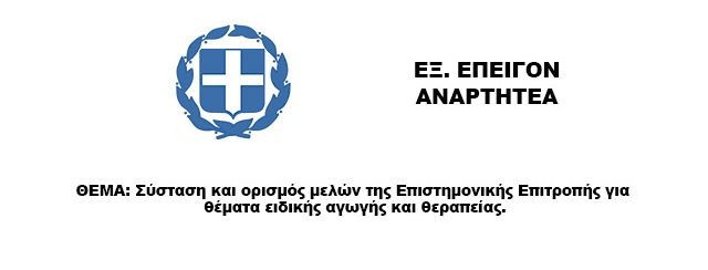 Σύσταση και ορισμός μελών της Επιστημονικής Επιτροπής για θέματα ειδικής αγωγής και θεραπείας